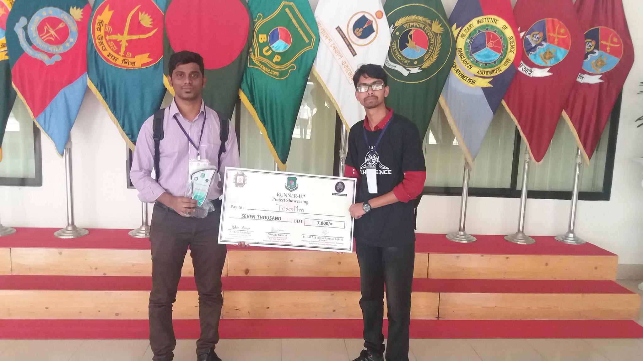 - 1st Runner up, Project Showcasing, BUP Techsurgence 2019 organized by Bangladesh University of Professionals, Bangladesh – 2019